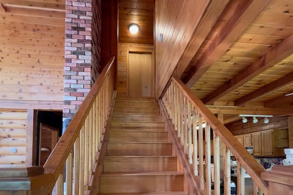 The spacious living room has a pull out queen sofa bed. It is important to note that the 4th bedroom is a loft that overlooks the living room. The three bedrooms and the loft has views of the woods.